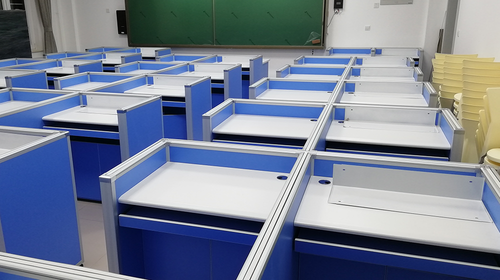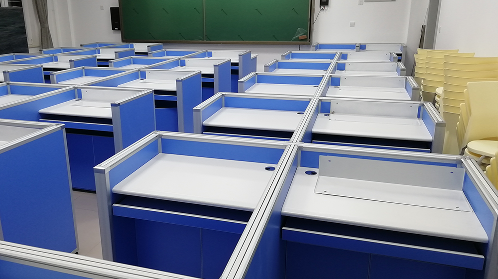 北京汇文中学安装的升降屏风桌-屏风升降考试桌