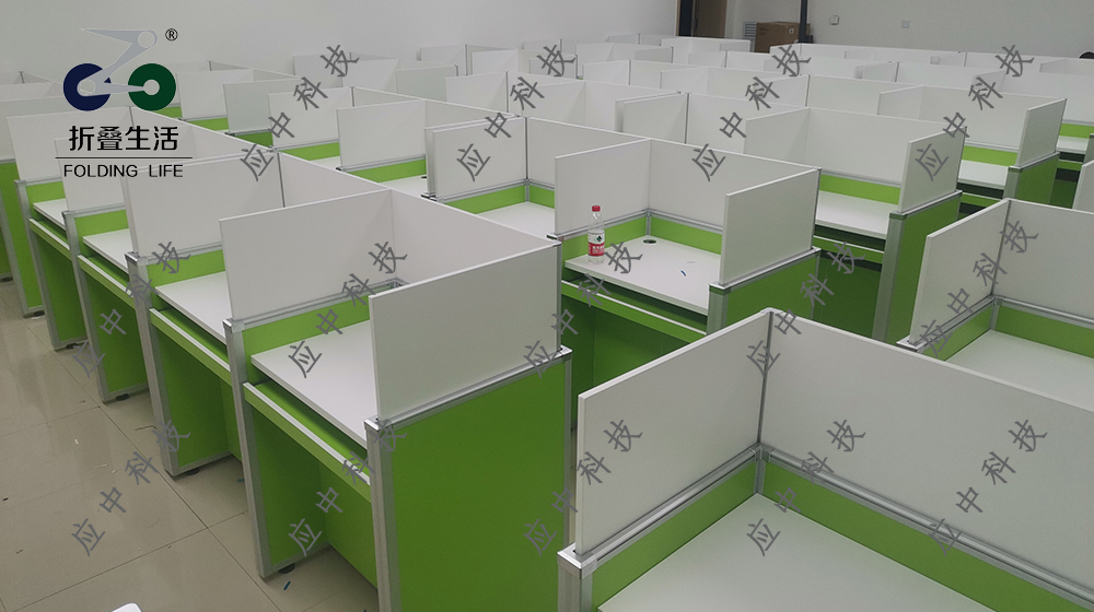 长春市第二十一中学安装升降屏风电脑桌-电教室电脑桌-机考卡座