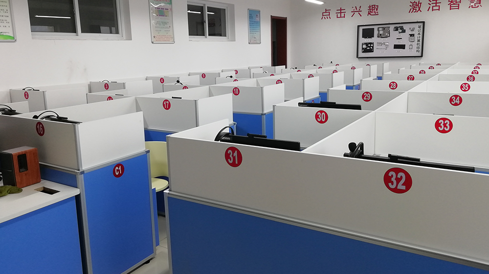 首都师范大学附属中学升降屏风考试桌,电教室电脑桌
