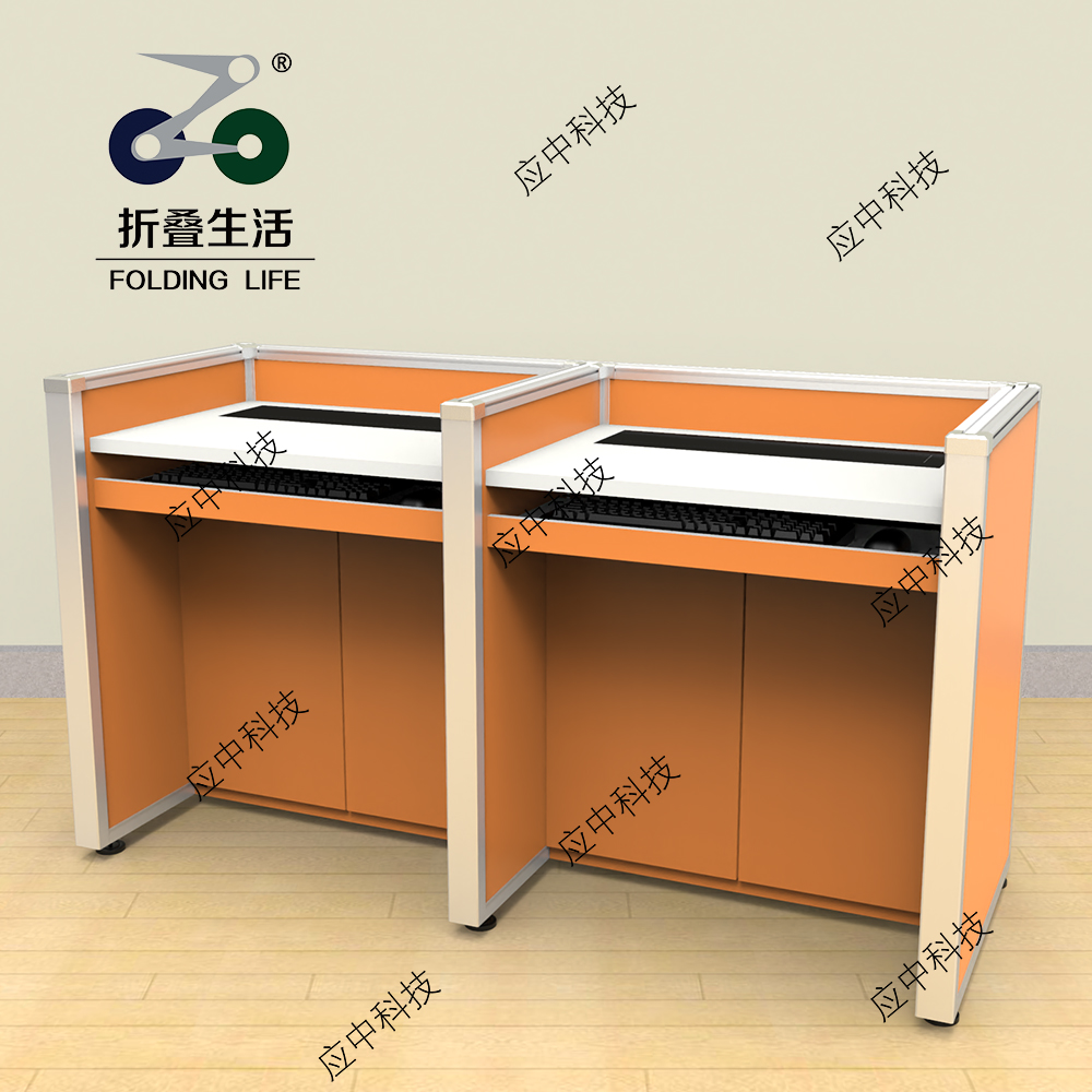 E字型液晶屏升降屏风升降电脑桌(橘黄色)下降效果