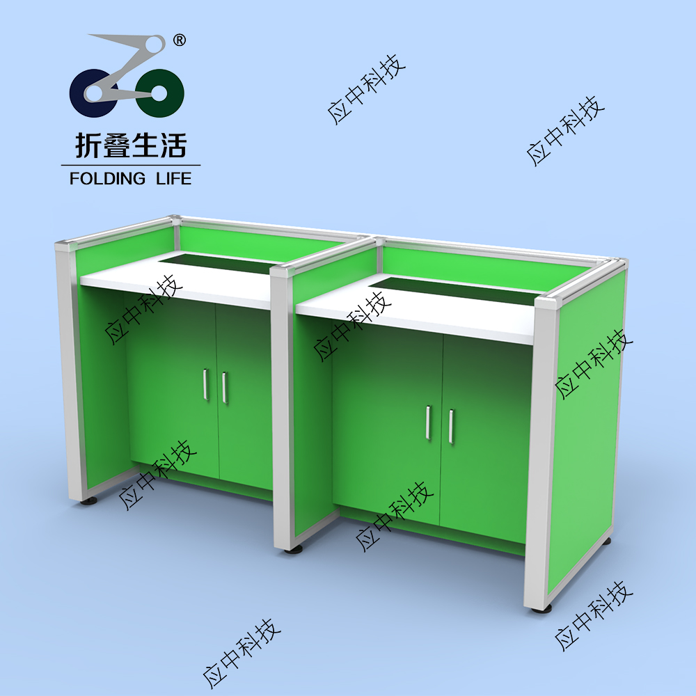 双人位屏风液晶屏升降电脑桌(鹦鹉绿)升起效果展示